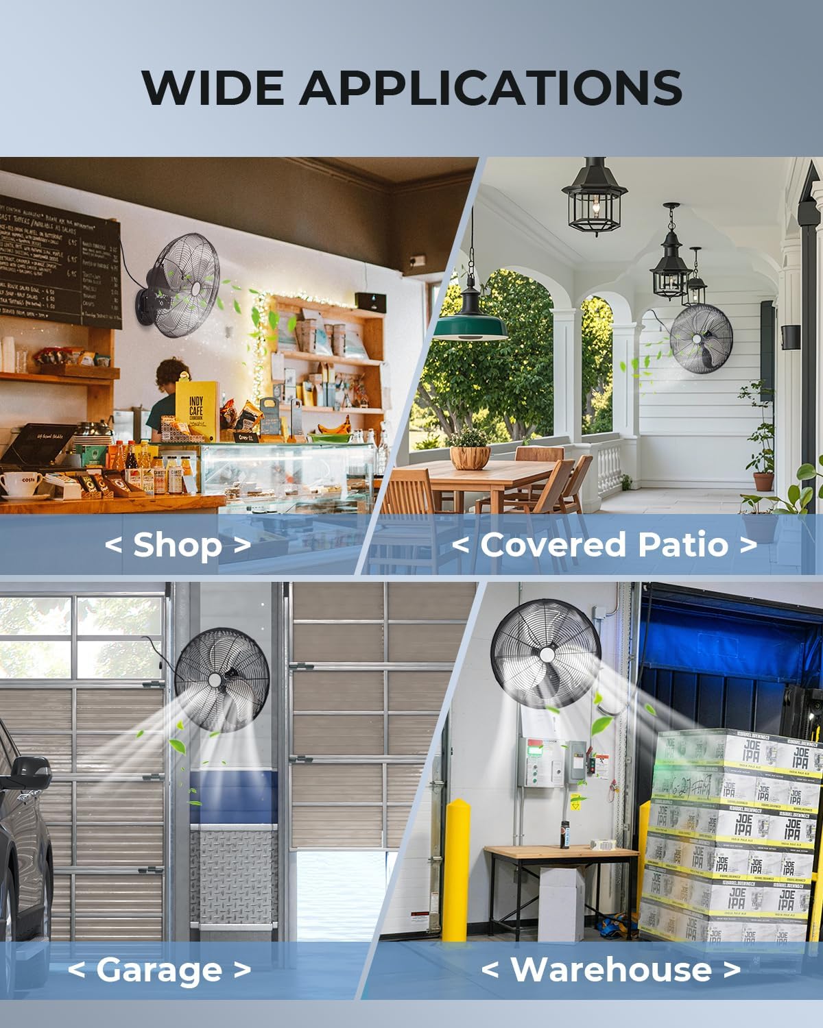 | Recommended Uses For Product | Air Circulation, Barn, Cooling, Garage, Patio, Shop, Warehouse, Workshop |