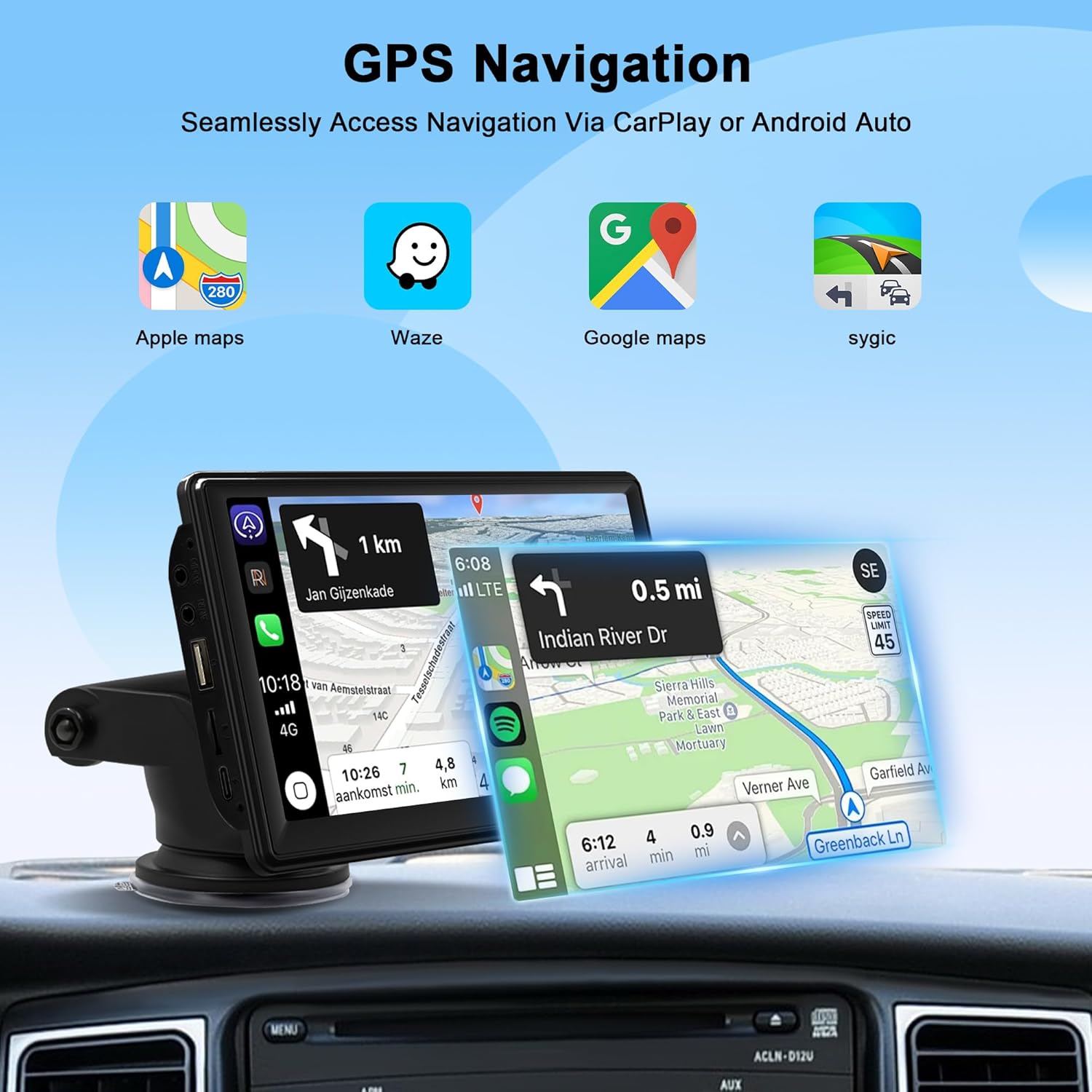 | Model Name | 7" Portable Touch Screen Car Stereo Support Wireless Carplay Android Auto, with Mirror Link/Voice Control/FM/GPS Navigation/AUX |