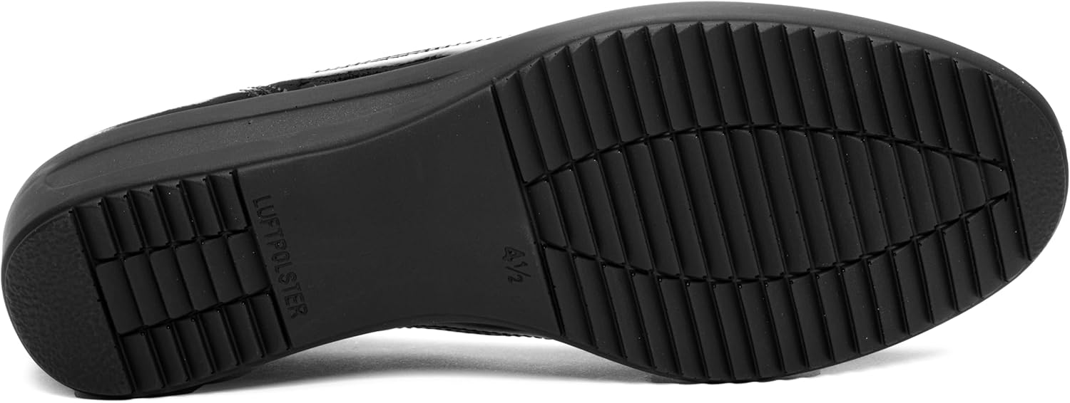 The feminine slipper with wedge heel in a comfortable width is particularly suitable for slightly wider feet. The discreetly incorporated elastic bands on the side ensure a good fit and also make it easier to put on and take off. Are you on your feet all day? No problem with these shoes with HighSoft function. The super soft upper leather in combination with a comfortable insole guarantees the highest level of comfort and fatigue-free walking. A special eye-catcher is the stripes made of effect leather on the side. In addition, the otherwise simple slipper trumps with a softly padded interchangeable footbed. This can be replaced in no time at all with your own inserts. Made from high-quality and butter-soft leather, the slippers are particularly light and therefore comfortable to wear even on long days. The contoured sole gives safety with every step. The air cushion sole increases the wearing comfort of this slipper. The shoe can be perfectly combined with fabric trousers and a casual cardigan and you are always perfectly dressed for many occasions.