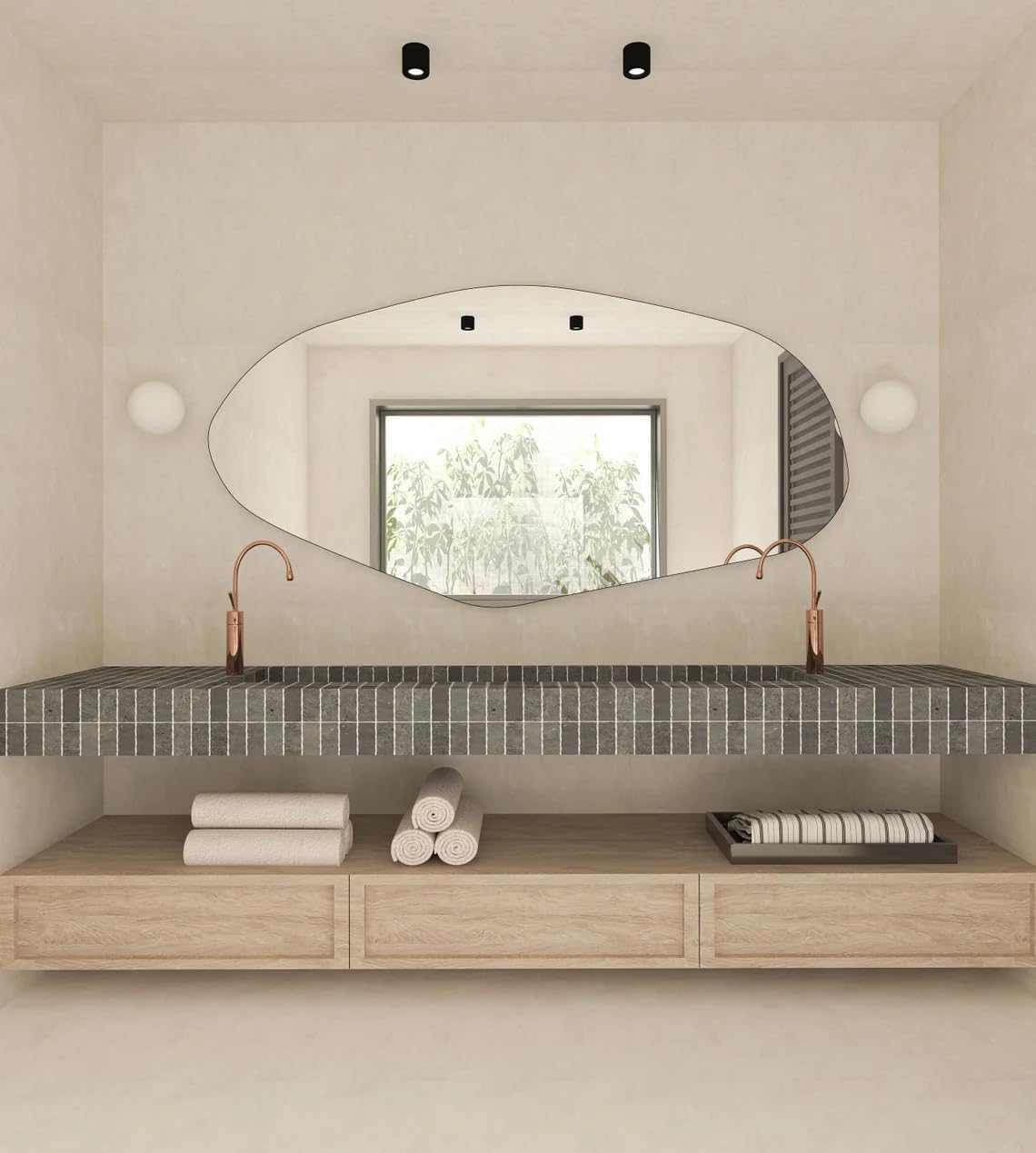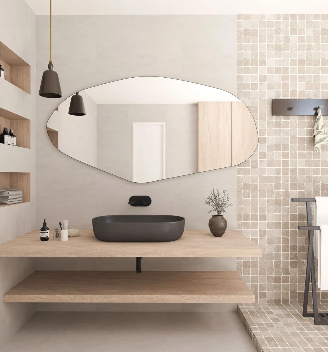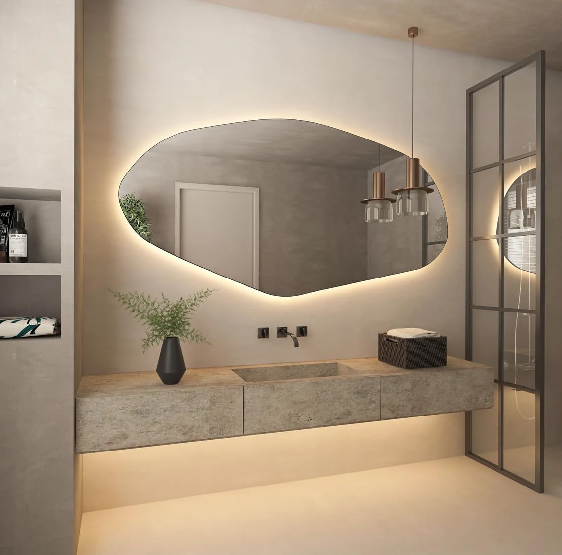 FAWdecor Asymmetrical Bathroom LED Mirror – Modern Elegance for Your Space * Enhance your bathroom’s aesthetic with the FAWdecor Asymmetrical LED Vanity Mirror. Designed with a sleek, irregular shape, this frameless mirror brings a bold, modern touch to any space. The built-in LED light offers a soft, backlit glow, perfect for makeup application, grooming, or adding a relaxing ambiance. * Measuring full-length, this mirror is ideal for bathrooms, dressing rooms, or any space where style and functionality meet. Its energy-efficient LED technology ensures a long-lasting and eco-friendly lighting solution. Easy to install and designed to be both decorative and practical, this mirror is perfect for those looking to upgrade their home with a statement piece. Key Features: - Unique Asymmetrical Design: Adds a modern, artistic touch to any room. - Backlit LED Lighting: Provides soft, ambient illumination for a clean and clear reflection. - Frameless Elegance: A sleek design that fits seamlessly with any décor. - Versatile Use: Ideal for bathrooms, vanities, dressing rooms, or hallways. - Energy-Efficient: Long-lasting LED lights for a sustainable and low-maintenance solution. * Transform your space with the FAWdecor Asymmetrical LED Mirror – a perfect blend of style, functionality, and modern lighting.