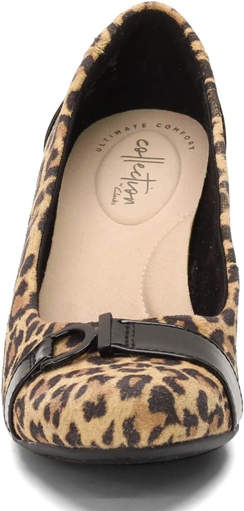 Heads will turn for this dressed up wedge. the heel height of just over 2 inches feels good all day long when paired up with clarks cushion soft technology and an ortholite footbed. cute detail over the toe makes this wedge pump stand out.