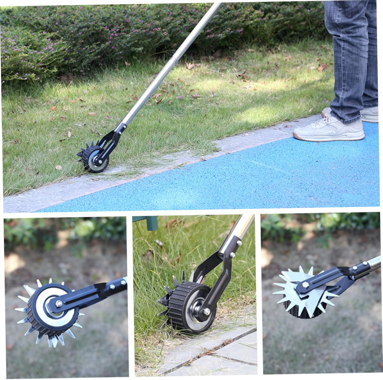 Description: Our lawn edger allows you to create clean, precise edges along sidewalks, driveways, and flower beds, giving your lawn a professional and well-manicured look. The stainless steel handle and metal shear, ensures long-lasting performance and resistance to rust and corrosion. The rotary grass edger tool features a wheel that guides the edger along the edge of your lawn, making it easy to create straight, clean edges with minimal effort. The 3-section stainless steel handle can be adjusted to your desired length, allowing you to comfortably use the edger without straining your back or arms. How to install:. ① Install the cutting head and align it with the hole. ② Insert screws. ③ Tighten the screws to fix it. ④ Turn and tighten the connecting rod. Features:. Edger Lawn Tool. -Color: As shown. -Material: Metal+Stainless steel. - Size: 3 Sections: Length 135 cm/53.15 inch. Shear Wheel: 4.5x15 cm/1.77x5.91 inch. Note: Manual measurement, please allow slight errors on size. The colors may exist slight difference due to different screens. Package Including 1 * Edger Lawn Tool