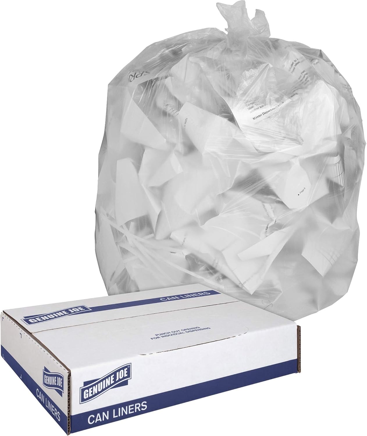 Trash can liners are ideal for recycling and pilferage control. High-clarity, clear film allows easy viewing of contents in the low-density bag. Star-bottom construction is designed for more even distribution of contents. Bags come in a convenient coreless roll for easy dispensing anywhere.