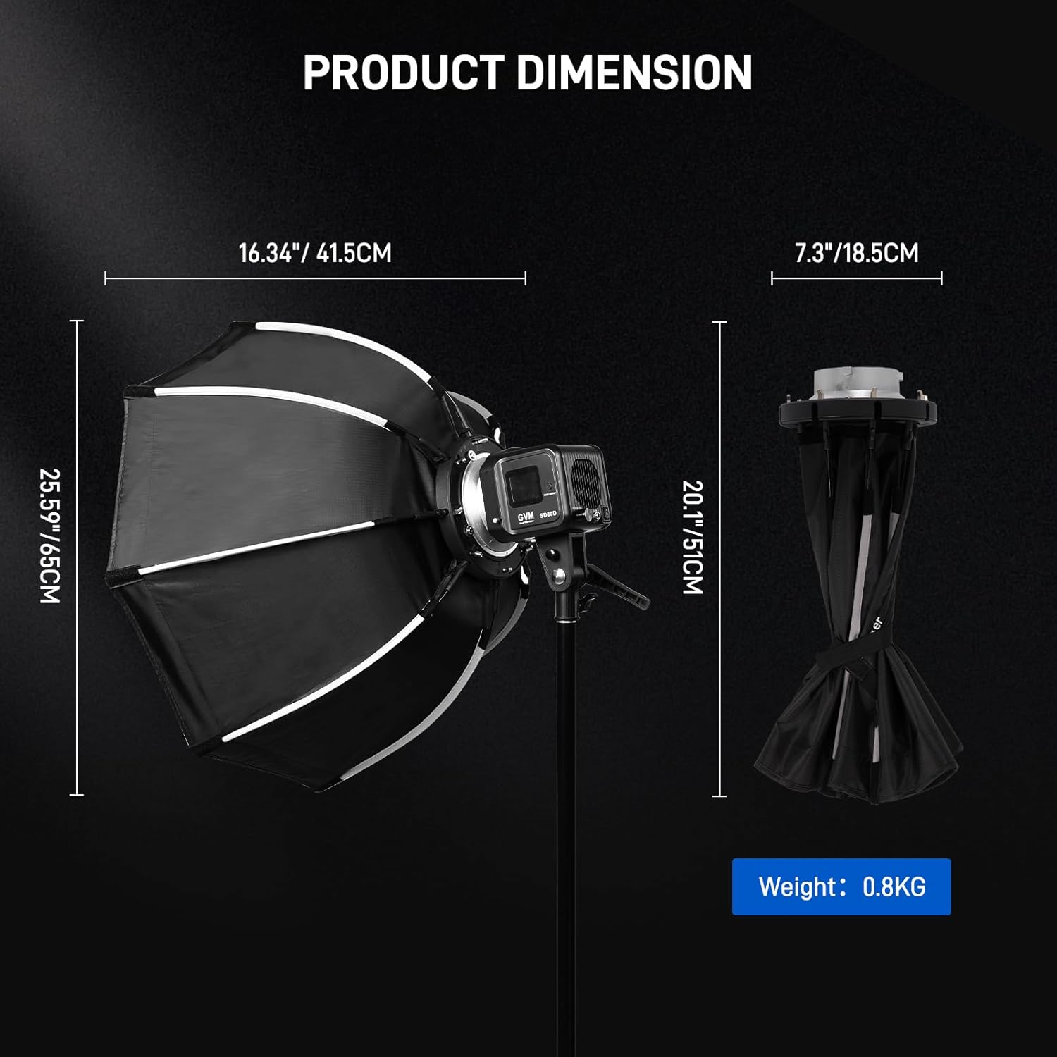 Standard Bowens Mount: Featuring a standard Bowens mount, this 65cm octagonal softbox ensures seamless connection with a wide range of lighting equipment. It offers quick and easy installation, saving you time during setup. Perfect 65cm Size for Optimal Lighting: With a 65cm diameter, it provides a balanced light spread. Ideal for various photography and video scenarios, it can create a soft, even glow that flatters any subject, whether it's a product, portrait, or scene. Complete Softening and Light Control Kit: Comes with a high - quality softening cloth to diffuse harsh light into a gentle, flattering glow. The included grid allows for precise light direction control, reducing spill and highlighting specific details in your shots. Durable Build for Long - Term Use: Constructed from high - strength materials, this softbox can withstand frequent use and transportation. Its robust design makes it a reliable choice for both professional photographers and passionate amateurs. Convenient Portability with Handbag: The softbox comes with a practical handbag. Lightweight and equipped with a comfortable handle, it enables easy transportation to different shooting locations, whether it's a studio or on - location shoot. Broad Compatibility with Popular Video Lights: It's compatible with popular video lights such as the GVM, Godox, Neewer, and Aputure. This wide compatibility ensures that you can integrate it into your existing lighting setup, regardless of your preferred brand.