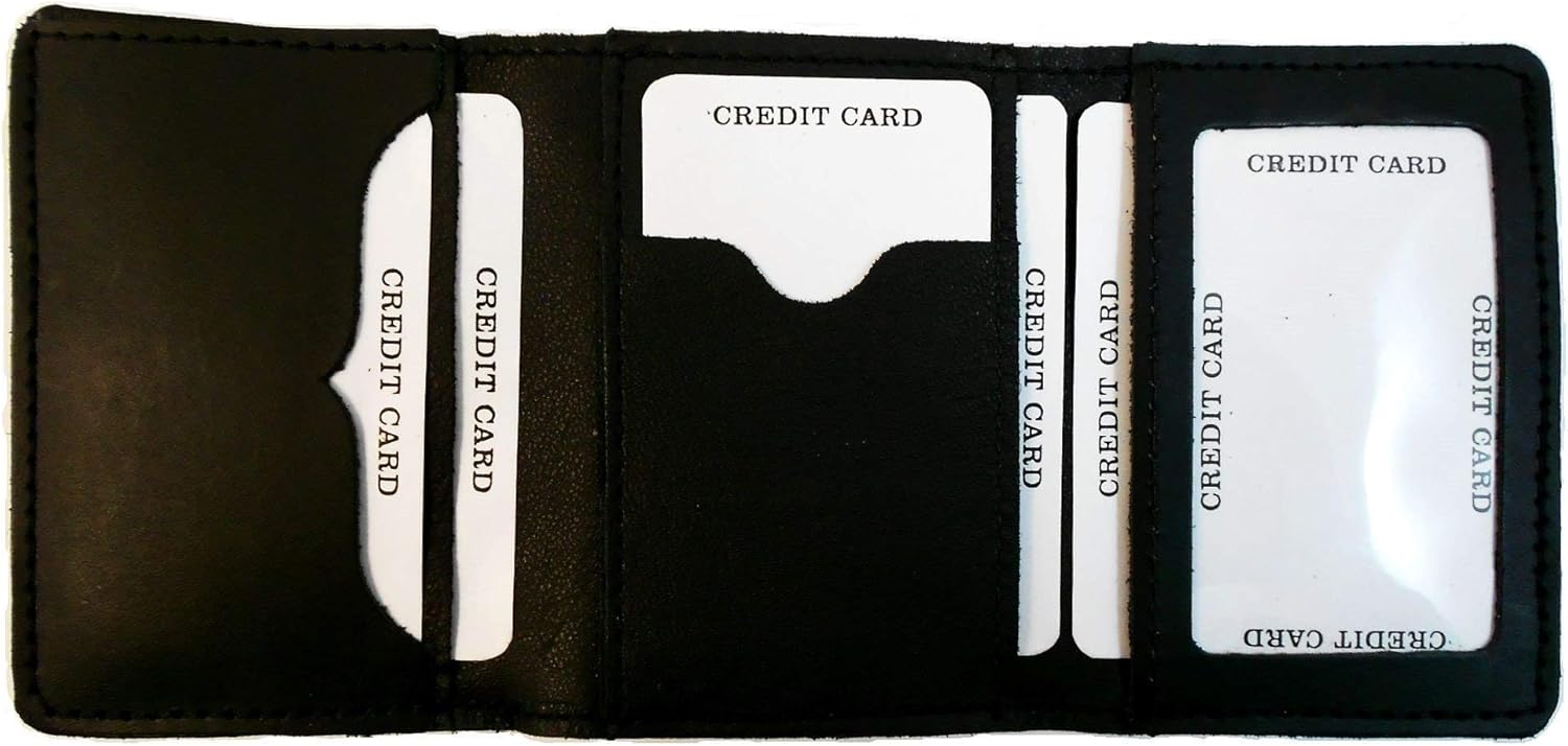 This is a leather trifold wallet featuring a wolf design. These wallets are hand made in Mooresville, Indiana, USA. For this wallet we use a soft, black garment leather that is durable and similar to the leather used in motorcycle jackets. The design is tooled in oak tanned leather and highlighted with shades of brown. This combination offers comfort, art and durability. Please understand that leather is a natural substance and each tooled design will be unique. Each piece of leather will take the dye in its own way, and therefore there will be some variations. There is no fabric in this wallet like you will find in most store-bought pieces. Our wallets are solid leather, no filler. The inside of the wallet features six leather pockets including an ID window. We will also send you a hand-crafted matching key chain. If you choose, for an additional $2.00, we can include a hard-to-find picture insert. The plastic insert has 6 sleeves to display up to 12 cards and/or photos.