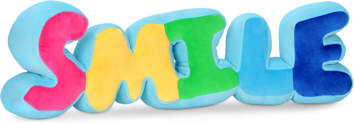 There's always room for one more fun, bright, comfy, crazy throw pillow - especially when it's as fun as this SMILE letter shaped pillow! This full-color, soft fleece pillow is ready to liven up any space with its bright rainbow of colors and message of joy. And it isn't just fun to look at - this softy is filled with 100% polyester fiberfill so it's never lumpy or bumpy! Sizeable pillow measures 19" wide x 6" high x 5" deep. The perfect combination of colorful fun, to-die-for design, quintessential quality and cozy comfort - just what you expect from iscream!At iscream we are obsessed about fun, function and style. With tasteful, upscale accessories and gifts designed in the USA by United States moms since 2014, you can always count on iscream for product quality and longevity. See our whole line for new ideas and old favorites with a new twist!