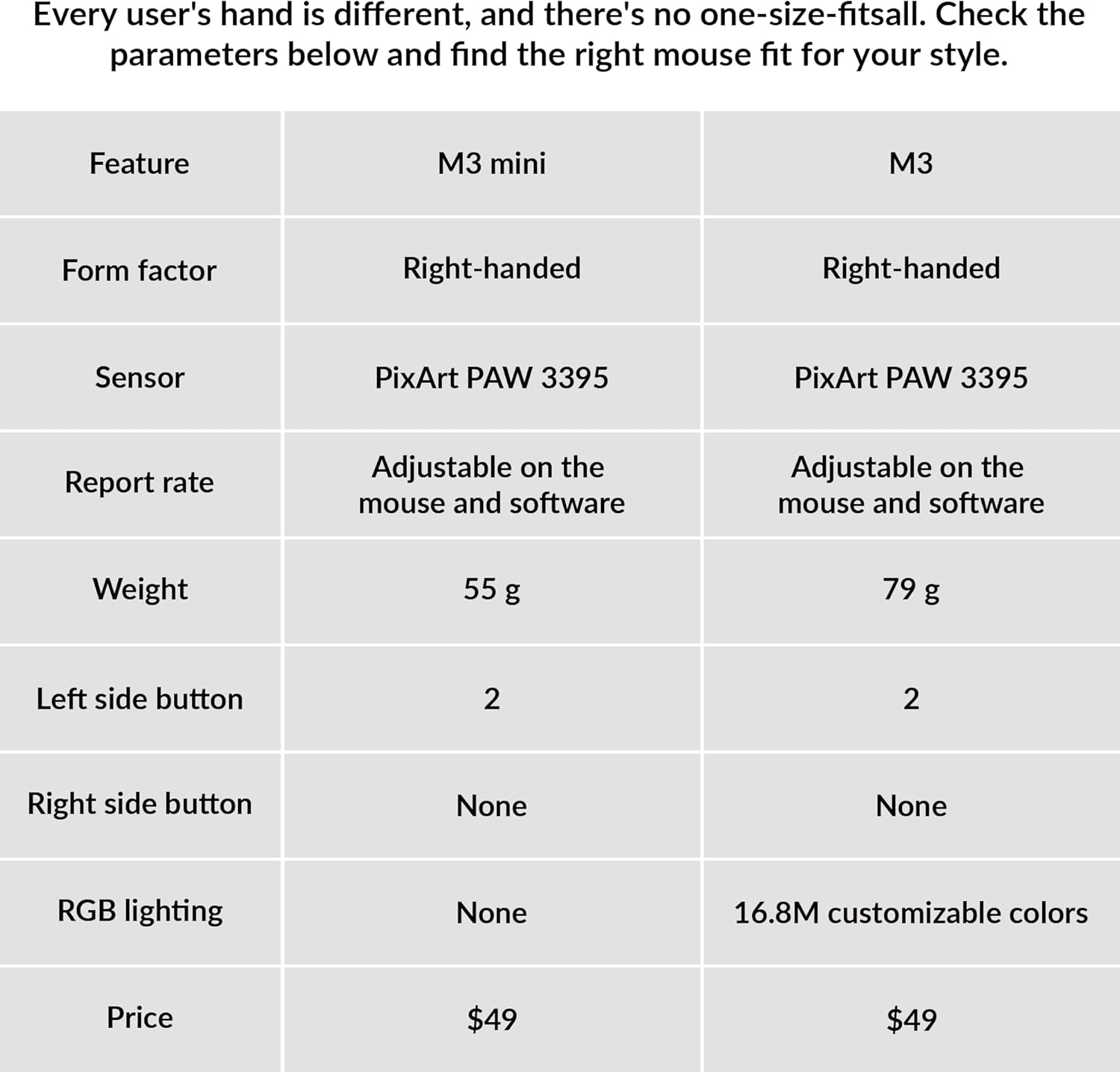 | Hand Orientation | Ambidextrous |