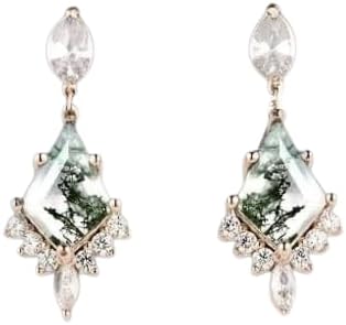 --Introducing our exquisite Kite Shaped Natural Moss Agate Delicate Studs, meticulously crafted to enhance the elegance of any woman’s jewelry collection. These stunning earrings feature a unique kite shape that beautifully showcases the natural patterns and earthy tones of moss agate, a stone renowned for its grounding properties and connection to nature. Set in high-quality 925 sterling silver, these studs not only provide a luxurious finish but also ensure durability and longevity, making them a perfect choice for both everyday wear and special occasions. --The vintage-inspired design of these earrings makes them an ideal accessory for brides seeking a touch of uniqueness on their special day. The moss agate stones are carefully selected for their distinctive markings, ensuring that each pair of earrings is one-of-a-kind. The delicate craftsmanship of the sterling silver setting complements the natural beauty of the stones, creating a harmonious balance that is both sophisticated and timeless. Whether worn as engagement studs or as part of a bridal ensemble, these earrings are sure to capture attention and admiration. --Beyond their aesthetic appeal, these kite-shaped moss agate studs carry a deeper significance, symbolizing growth, renewal, and harmony. They make a thoughtful gift for loved ones, celebrating milestones such as engagements, anniversaries, or simply as a gesture of appreciation. With their unique design and meaningful attributes, these earrings are not just accessories; they are cherished pieces that tell a story. Elevate your jewelry collection with these distinctive studs, and embrace the beauty of nature in a stylish and elegant form.