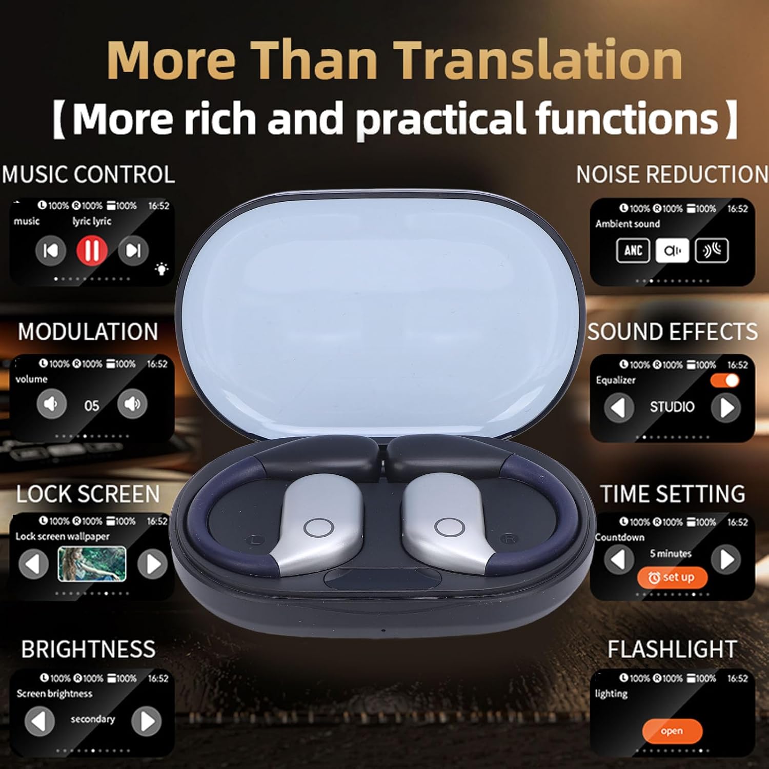 Specification: Item Type: Language Translator Earbuds BT Version: 5.49 Playback Format: Single ear or double ear Operating Mode: Touch control BT Connection Distance: Approx. 10m / 32.8ft Running Time: 6-8 Hours Battery Type: Earphones: Built in 2 x 50mAh li ion battery Charging Case: Built in 200mAh li ion battery Material: Plastic and electronics Support 11 System Languages: Chinese, Traditional Chinese, English (US), French, Russian, Thai, Japanese, Korean, German, Spanish, Arabic Support 144 Language Translations