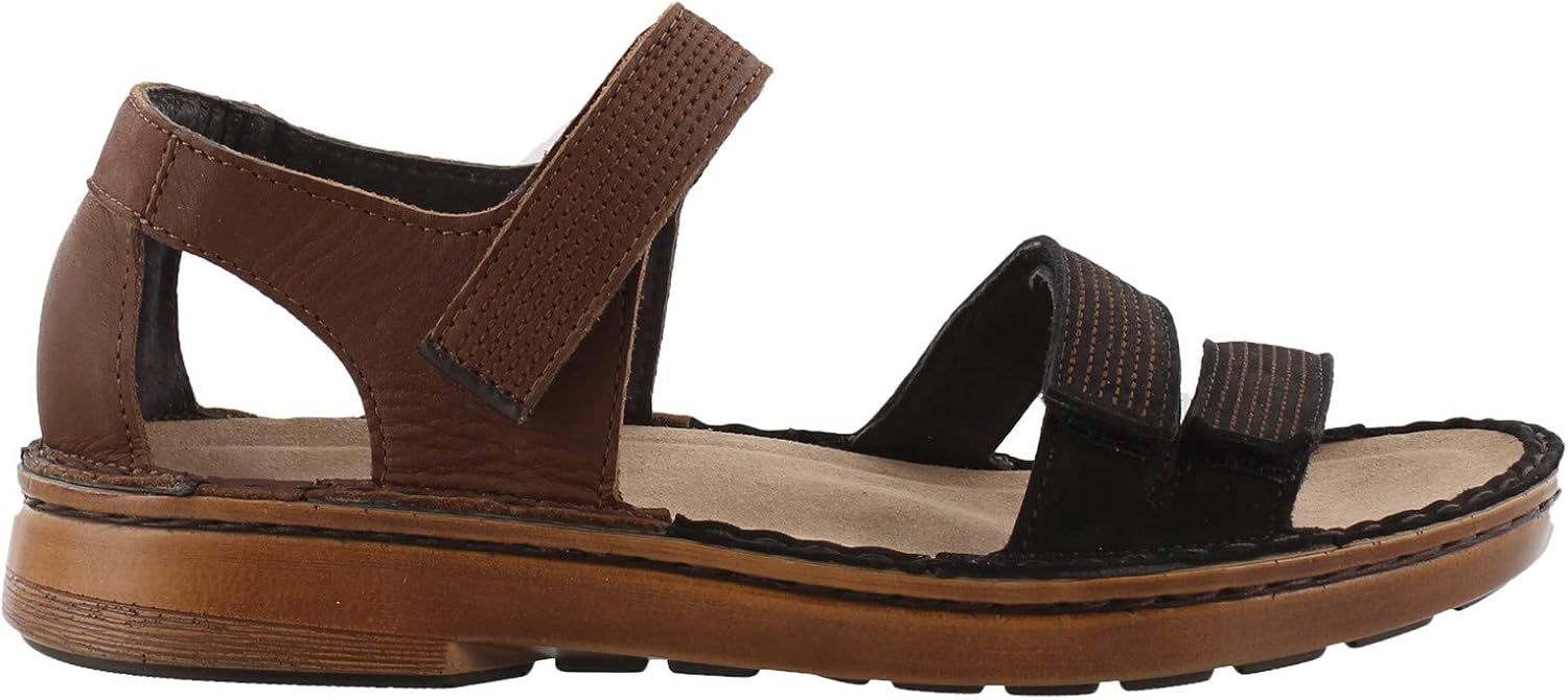The women's Naot Amarante sandal has the look and feel of a light, open summer sandal with the support of a shoe. The adjustable ankle strap allows for the perfect fit and the medium to wide footbed is perfect for wider feet. With the signature Naot anatomic latex footbed that molds to your foot with wear, this warm weather sandal will get you through the Spring and Summer in style and comfort. The two-toned suede upper also adds that fashion pop to any outfit.