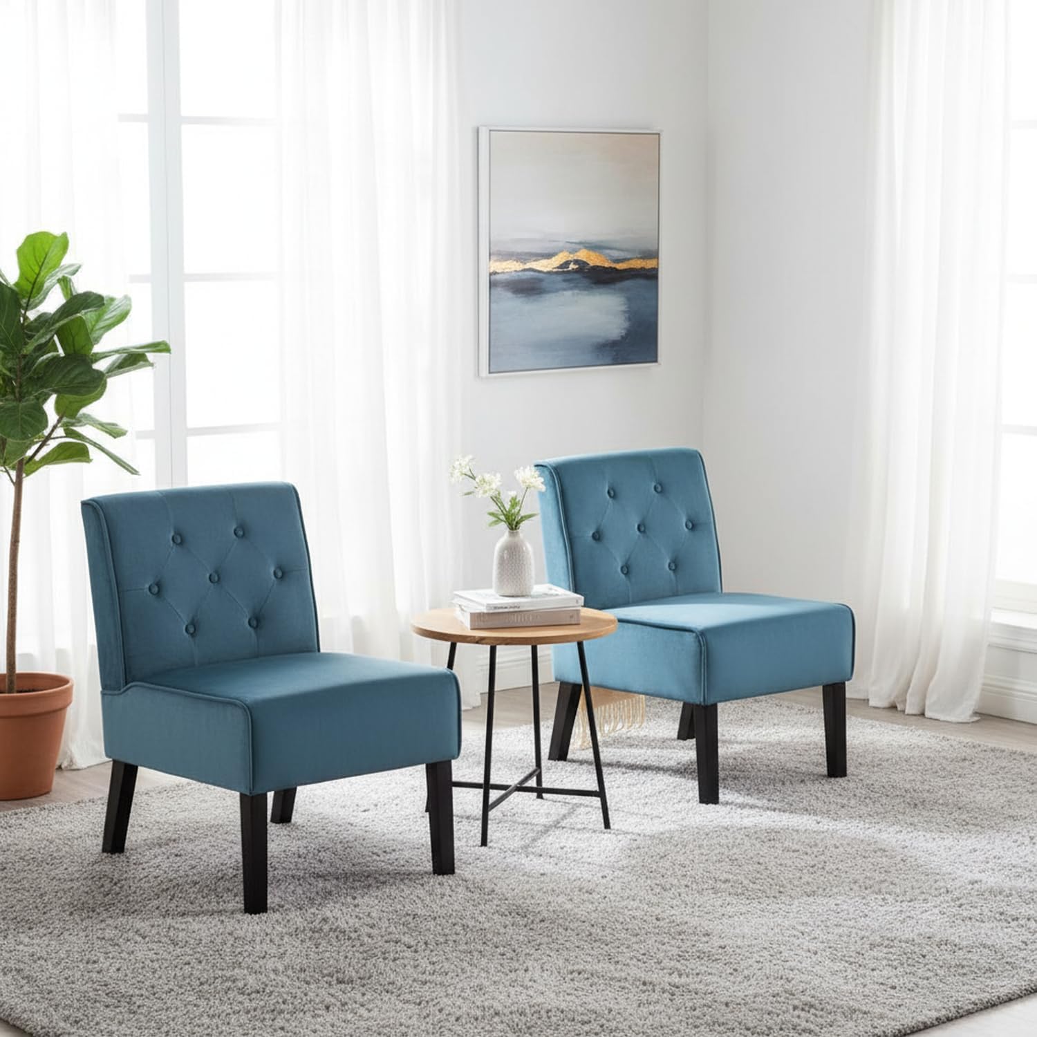 Item Type Name Mid Century Modern Living Room Armless Button Tufted Accent Chair With Solid Wood Legs, 2 Piece