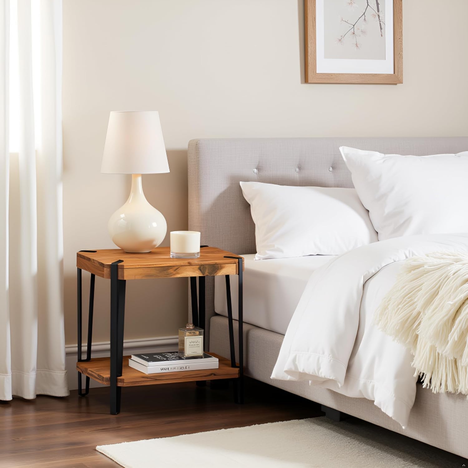 | Item Type Name | Ryegate Live Edge End Table with Storage – 2-Tier Solid Acacia Wood Side Table with Metal Frame and Lower Shelf – Industrial Accent Table for Living Room or Bedroom by Alaterre Furniture |