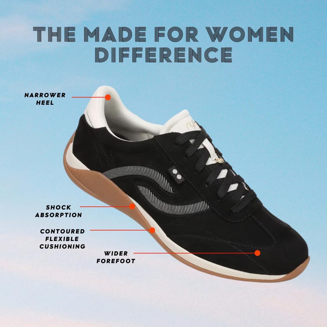 Start your go-everywhere era in these low profile sneakers with decorative stitching, our new signature logo, and a retro inspired gum sole. BEST FOR: Casual walking + everyday wear. PERFORMANCE TECH: Exceptional cushioning throughout for standout comfort. MADE FOR WOMEN FIT: Women’s sneakers designed for a woman's unique foot shape with a narrower heel, roomier toe + softer cushioning. MATERIALS: Microfiber upper + padded collar for extra cushioning. CLOSURE: Lace up closure for secure fit. INSOLE: Anatomical insole with extra arch support + heel support and partially recycled EVA. MIDSOLE: ACTIVfoam EVA for soft cushioning. OUTSOLE: Molded rubber with raised sidewalls in the midfoot for extra support. WEIGHT: 230 g/8.1 oz per shoe. HEEL-TO-TOE DROP: 10mm.