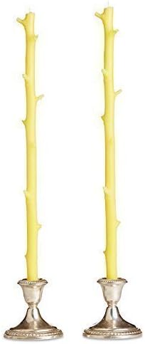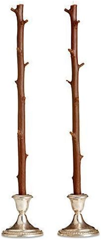 Hickory Stick Candle ~ 18 Inches Tall ~ Universal Base fits 5/8" to 1" Receptacles ~ 17 Hour Burn Time ~ Our Hickory candle is cast in 100% beeswax from a section of developing branch with some mature nodes, but mostly new branch nodes along the entire length. It is our most popular cutting (in Dark Chocolate and Robin Blue especially).The bark is smooth, with primary and mature detail. The Hickory casting has less-pronounced protrusions, but more of them, than any of our other styles. Though woodsy and rustic, this candle also fits well in modern settings.
