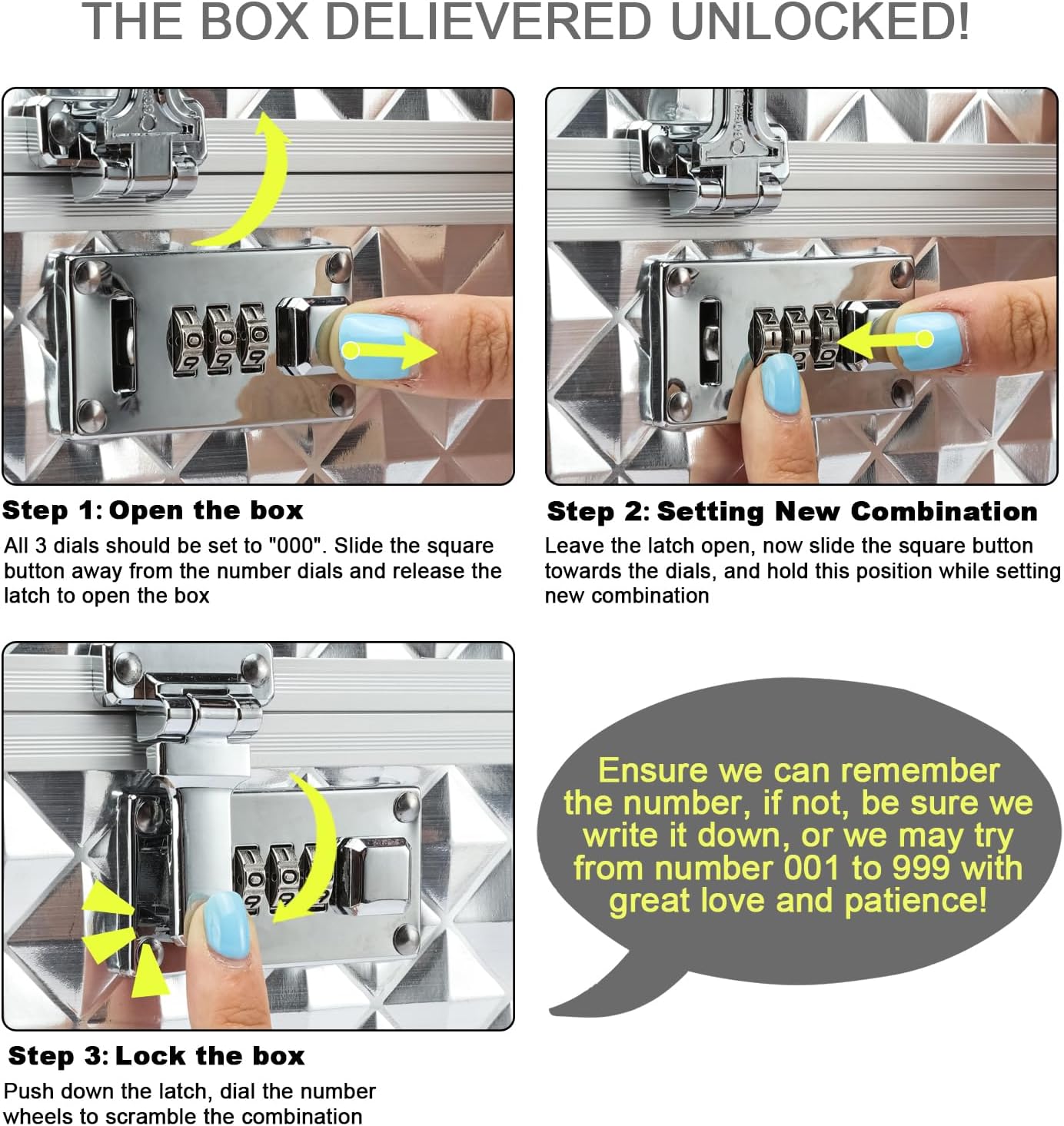 | Opening Mechanism | Combination Lock with Latch |