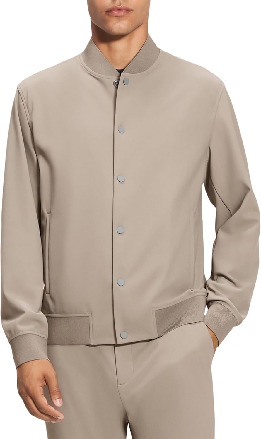 Our take on the bomber jacket, this snap-button version is accented with a classic collar, ribbed trim and side pockets. It’s crafted with our Precision Ponte—a wrinkle and abrasion-resistant knit that’s quick drying and UV protective. Its honeycomb structure allows ample airflow for added comfort.