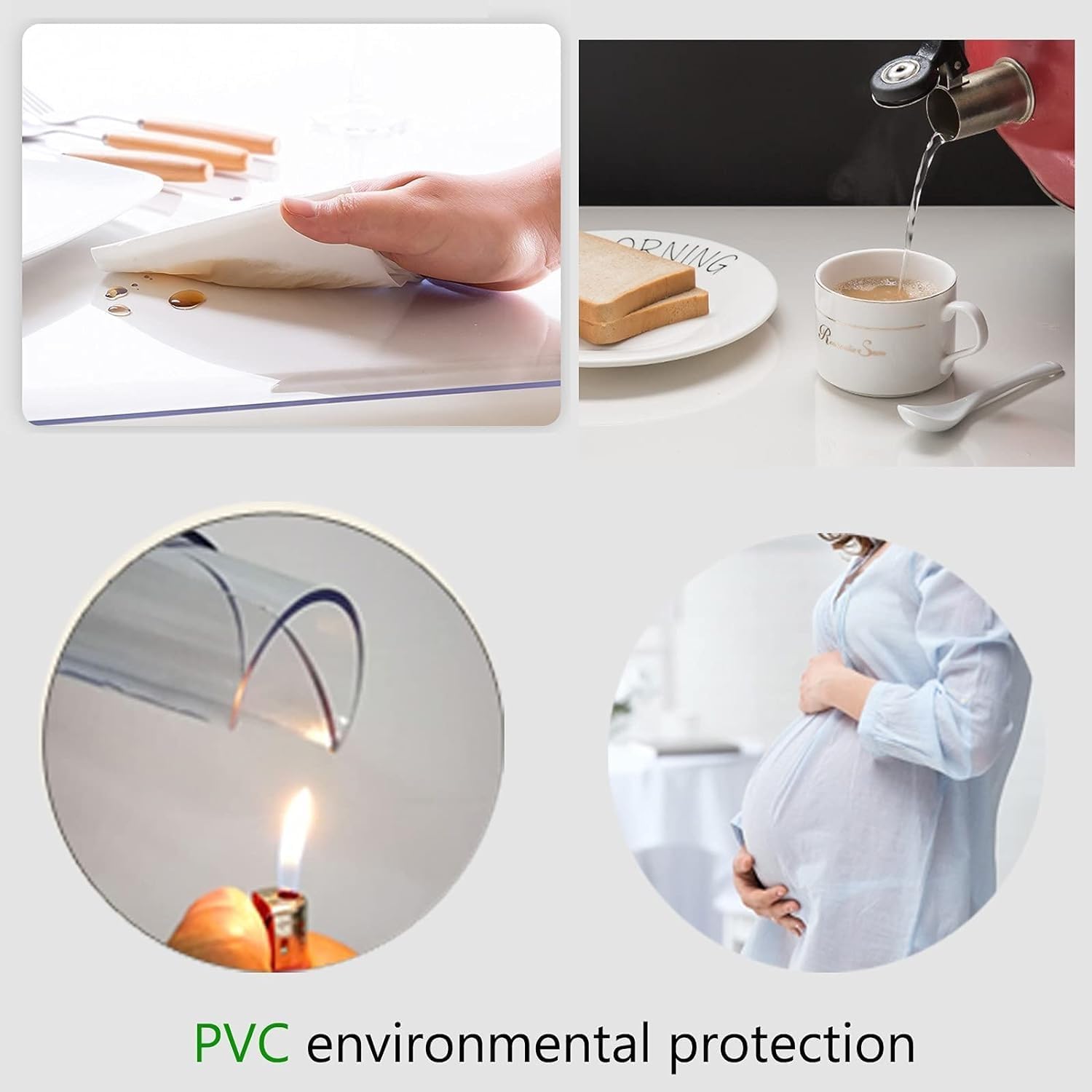 Product Name: Matte Tablecloth/Table MatMaterial: PVCShape: Rectangle/SquareStyle: MatteProcess: Machine CuttingThickness: 2mmDimensions: Width x Length (Customizable)Angle/Edge: Rounded Corner + Straight EdgeScope of Supply: 1x TableclothProduct Description:1. Versatile Usage: This table protector can be used on a wide range of surfaces, such as kitchen countertops, dining room tables, office desks, coffee and end tables, dressers, nightstands, TV benches, and sofa tables. It's also suitable for use as a computer desk pad, hard floor chair mat, pet feeding mat, under-grilling table protector, and wooden/glass furniture protection.2. Superior Protection: Our clear table cover protectors are made of premium, non-toxic materials, providing a thick and reliable barrier to protect the surface of your table or desk. It effectively safeguards against scratches, scuffs, stains, and spillages, while still showcasing the natural beauty of your table and wooden furniture tops. You can even place pictures or photos underneath the clear table protector for a personalized touch.3. Water and Oil-Proof: This PVC clear table cover mat is waterproof, oil-proof, and anti-coffee. It prevents stains from penetrating the desktop and can be easily wiped off with a damp cloth or washed with water. It's the best choice for your dining room table, ensuring that stains can be effortlessly removed with a simple wipe-down.HOW TO MEASURE:To ensure the right fit, please measure the width and length of your tabletop. Choose the appropriate size or order a slightly bigger one that can be easily cut to fit. We offer custom shapes such as rectangle, oblong, square, round, and oval.