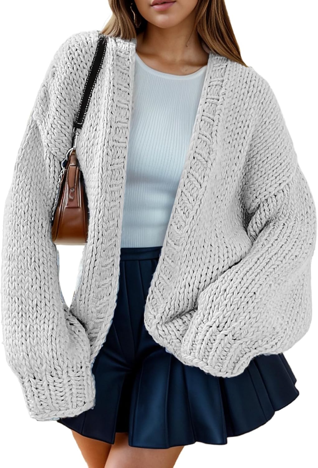 • Womens cardigan sweaters feature in open front, long sleeve, drop shoulder, batwing sleeve, oversized loose fit style, solid color, chunky knit sweater cardigans.